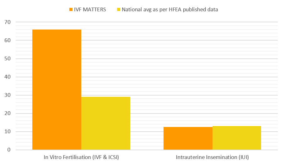 Our statistics display the live birth rates for 2021, although the HFEA data currently available is for 2019. Comparable data can be limited as all fertility treatment statistics are based on patients' personal choices and the most appropriate individualized treatment pathway. The success rates for Dr Irfana Koita for all ages are displayed here.